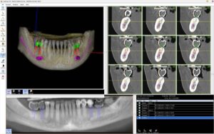 ed infine l’inserimento degli impianti valutando attentamente di non interferire con strutture anatomiche pericolose adiacenti. Tutto viene programmato e pianificato (misure e angolazioni impianti, innesti ossei, protesi provvisoria ecc.) PRIMA CHE VENGA RIPRODOTTO REALMENTE SULLA PERSONA CON L`INTERVENTO CHIRURGICO IMPLANTARE.