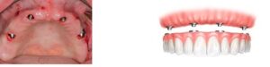 Nel nostro Centro di Implantologia Dentale abbiamo importato questa tecnica, ormai così consolidata che riporta consensi positivi a livello mondiale, personalizzandola con l’aggiunta di due impianti nell’arcata superiore (realizzando una arcata dentaria di 12 denti sostenuta da 6 impianti)